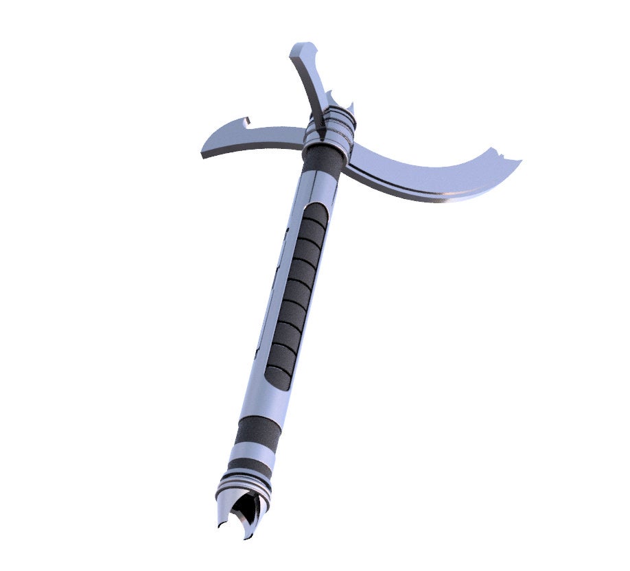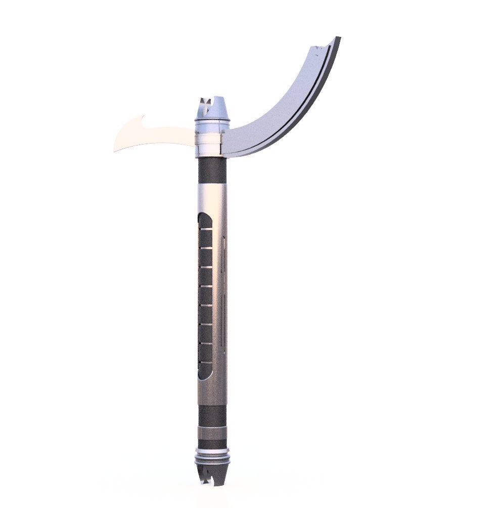 This is a 3D printed unassembled kit. All parts are printed in PLA plastic. The interior can accept a 1" outer diameter blade, but realize this is a plastic model and for display purposes only, plastic is not strong enough to have cosplay battles with unless you reinforce it in some way.