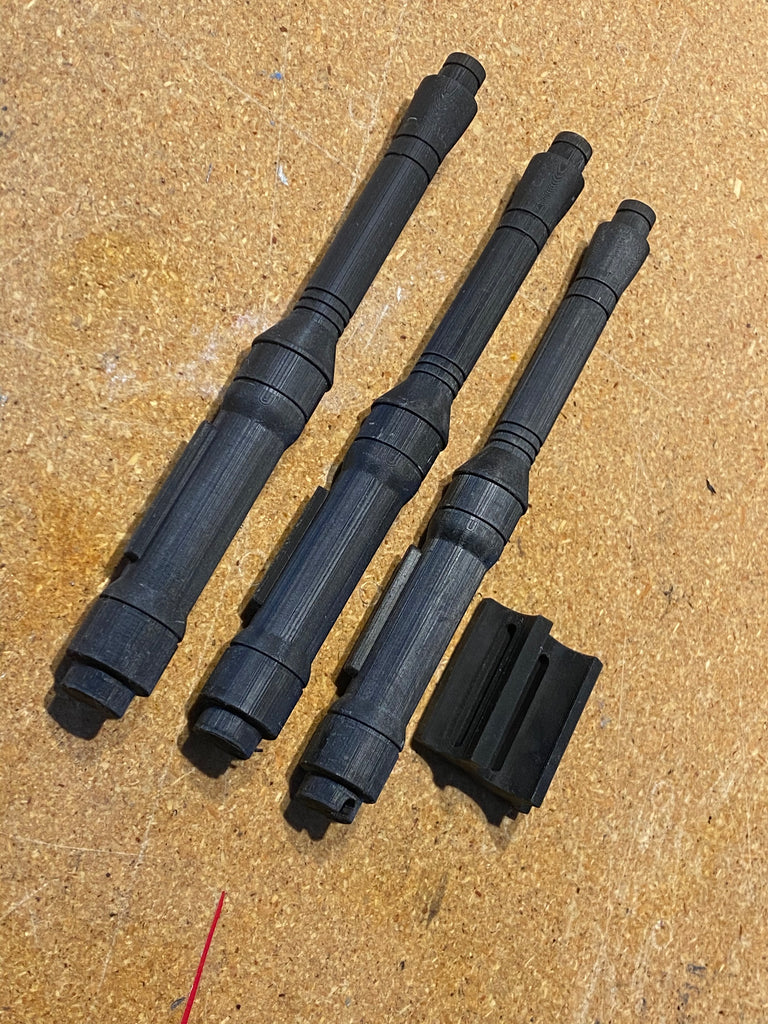 Solid resin missiles for mounting on the Death Troopers forearm. These are printed on our high resolution resin printer which yields extremely sharp detail.