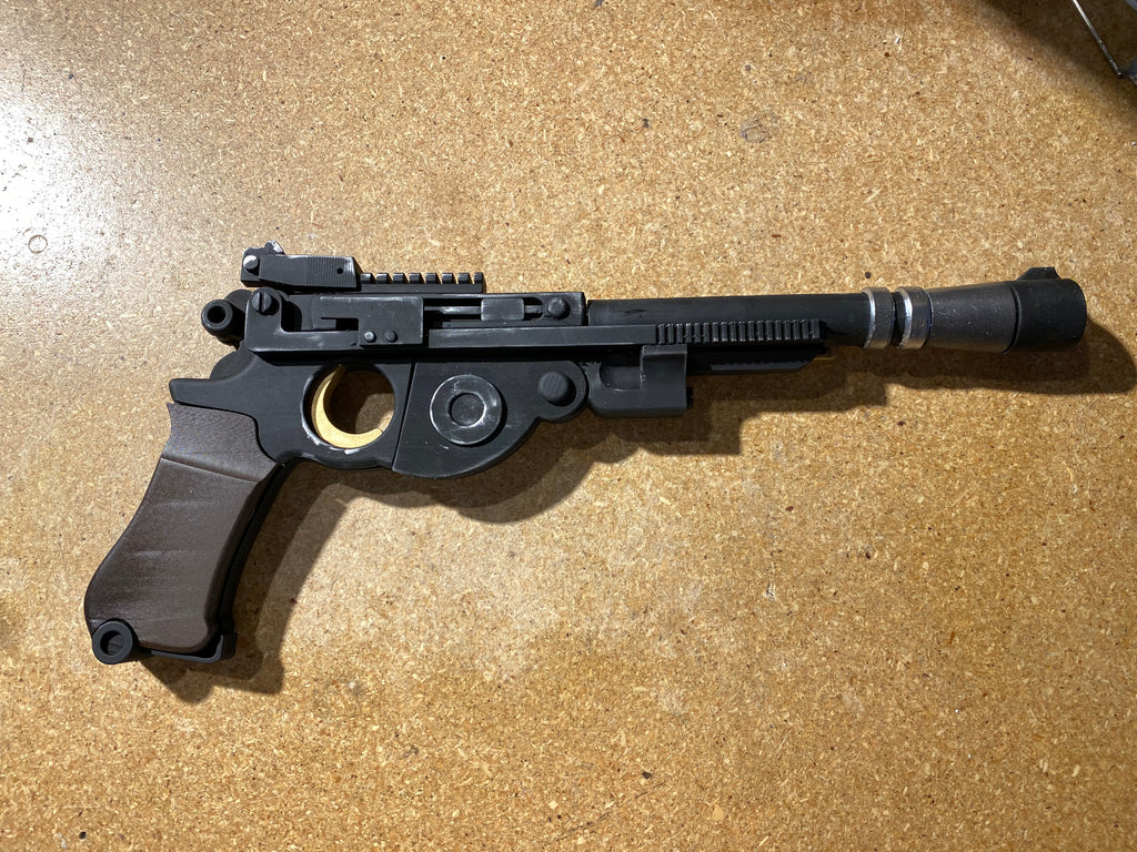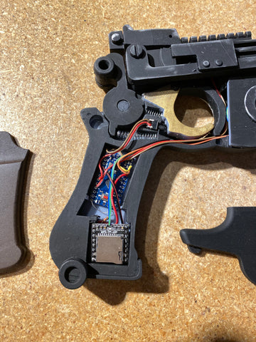 Our exclusive blaster design includes a working trigger and just enough space for a small electronic sound system. (Electronics not included. )